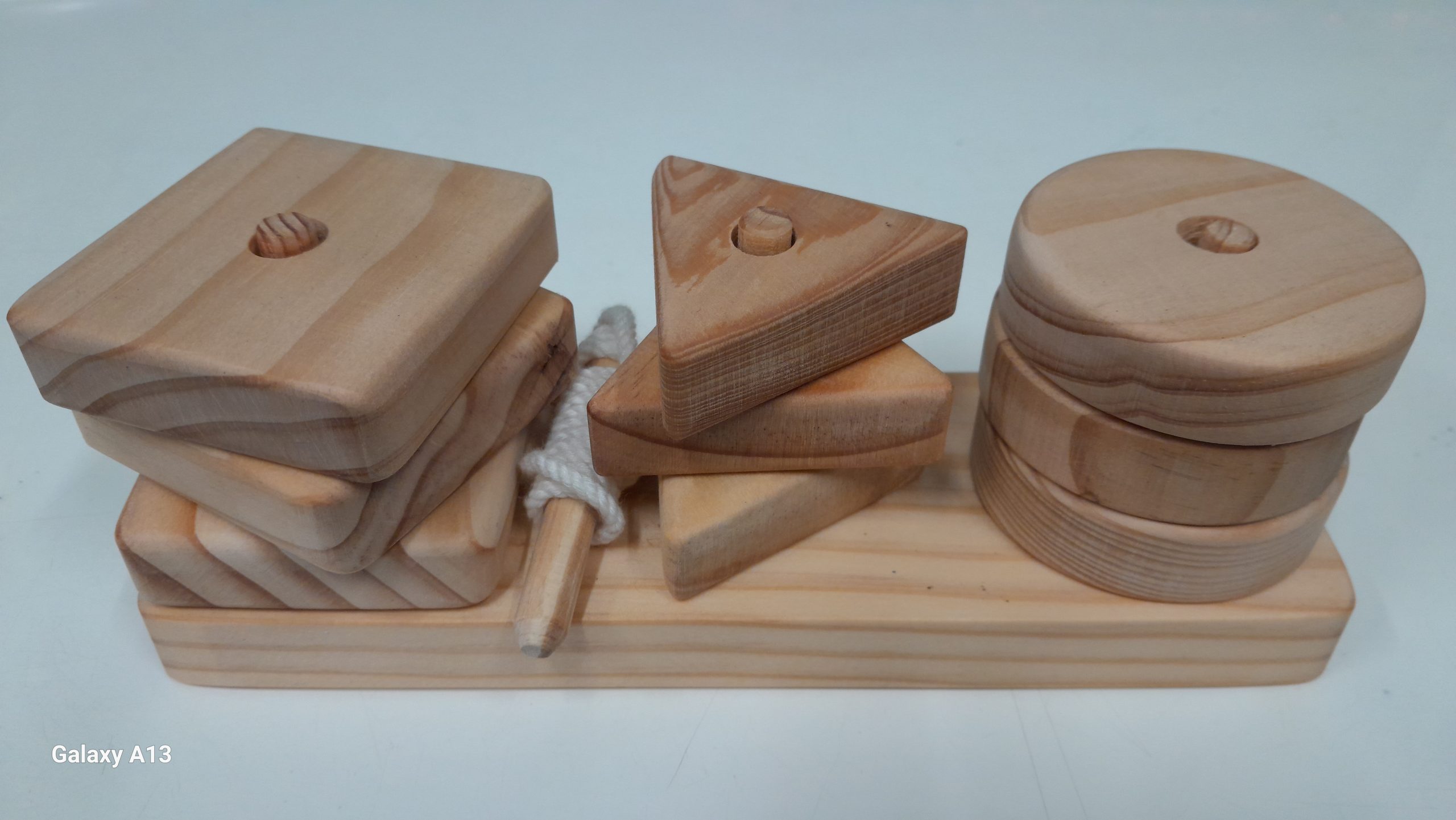 - Encourage fine motor skills, hand–eye coordination, and shape recognition with this beautifully handcrafted wooden lacing set. Children can thread the sturdy wooden needle through nine different shapes and stack them neatly on the included sorting rack. Set includes: 1 wooden sorting rack 9 assorted wooden shapes (circle, square, triangle, etc.) 1 wooden lacing needle with cord Made from smooth, natural…