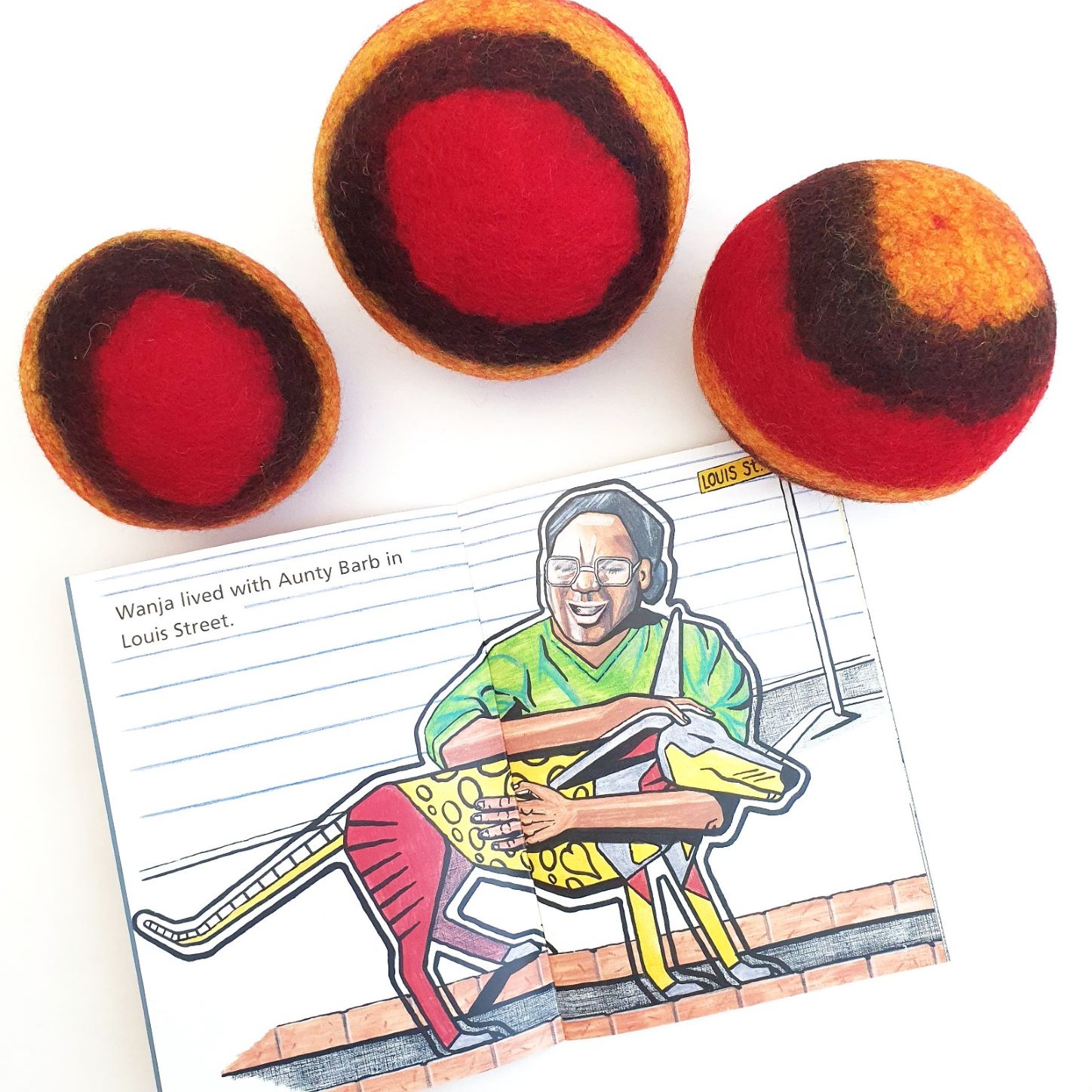 AFFBS2: Aboriginal Felt Ball Set of 3 (Faded Lines) 2