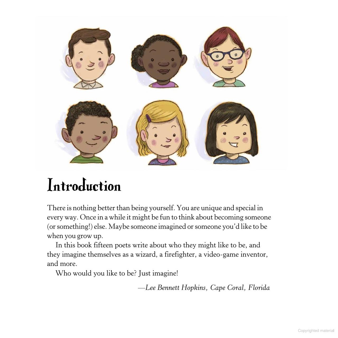 Celebrated poet Lee Bennett Hopkins shares a diverse collection of poems that ask (with the help of Newbery medalist Lois Lowry, former US Children’s Poet Laureate J. Patrick Lewis, and others), “Who do you want to be?”