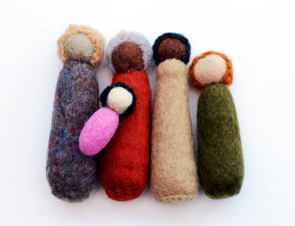A beautiful set of 5 felt figures. Our Mob Felt Family with various skin tones and hair colours.